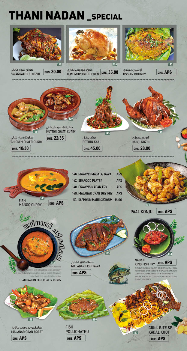 For those seeking heartier dishes, the menu features authentic South Indian specialties and rich seafood preparations that are ideal for a comforting dinner or a shared meal with friends and family. Dishes such as the Dum Murugi Chicken or the Malabar Crab Dry Fry provide satisfying, flavorful options that pair well with the inviting, laid-back atmosphere of the restaurant.
